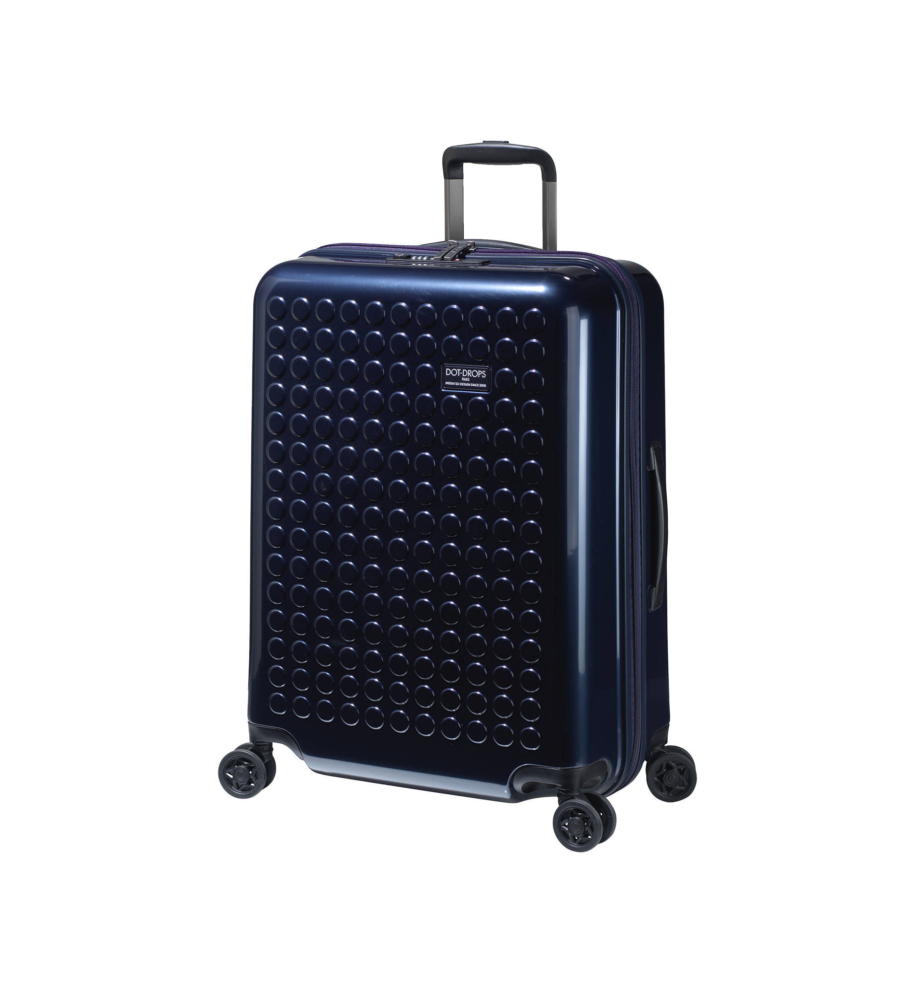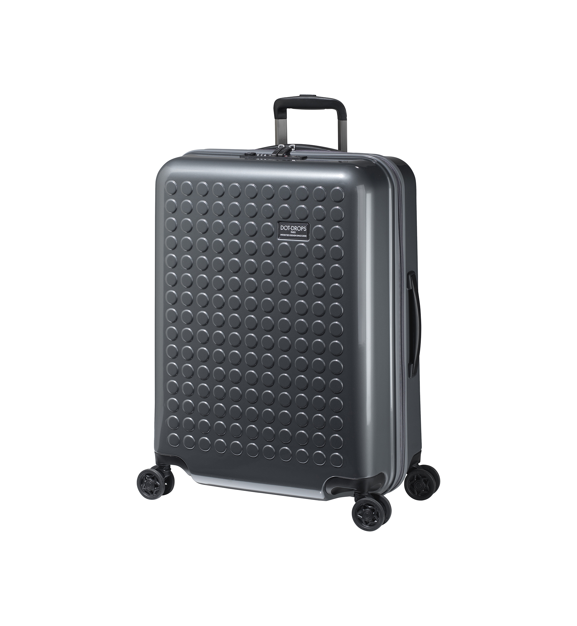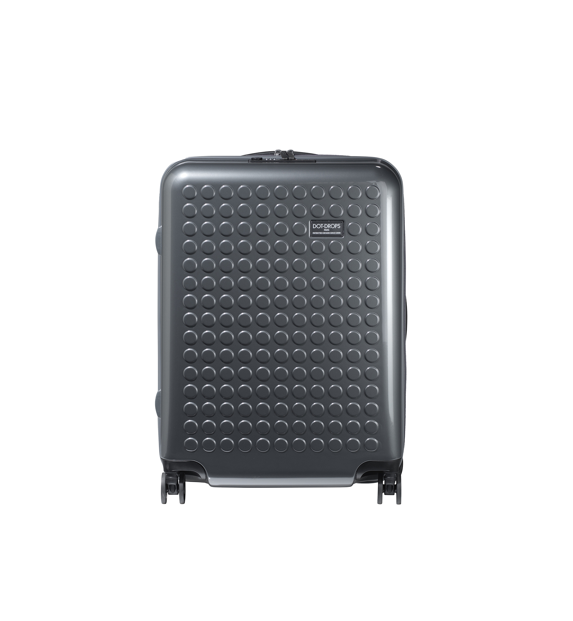 Dot-Drops Chapter 2 suitcases stand out with their innovative and personal design. They are made from 100% premium polycarbonate, ensuring a lightweight and durable construction that can withstand the challenges of travel. The surface of the suitcase is designed with Dot-Drops' iconic pattern, which allows you to decorate the suitcase using the included stickers. This makes it easy to add your own touch and ensure that your suitcase stands out on the baggage carousel. Features include: 360-degree wheel system: Smooth and silent wheels for easy maneuvering on all surfaces. Internal organization: Well-designed interior with spacious compartments and elastic straps for secure packing.