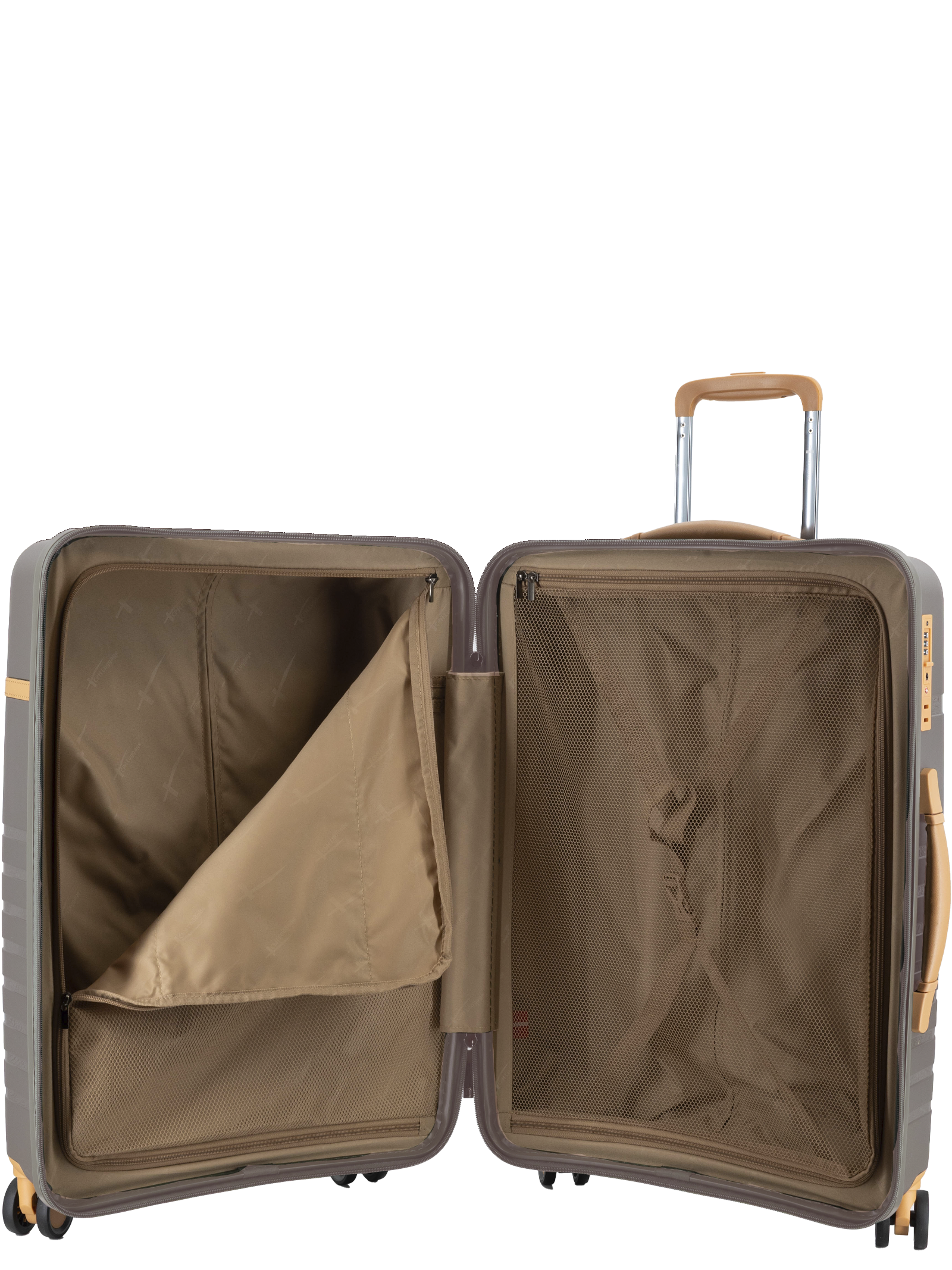 TSA-kodelåsen giver ekstra sikkerhed og gør det muligt for lufthavnsmyndigheder at åbne og inspicere kufferten uden at beskadige låsen. Det sikrer tryg og problemfri rejse gennem sikkerhedskontroller.
