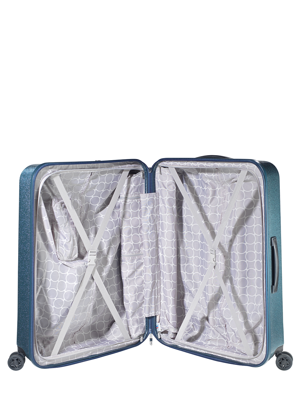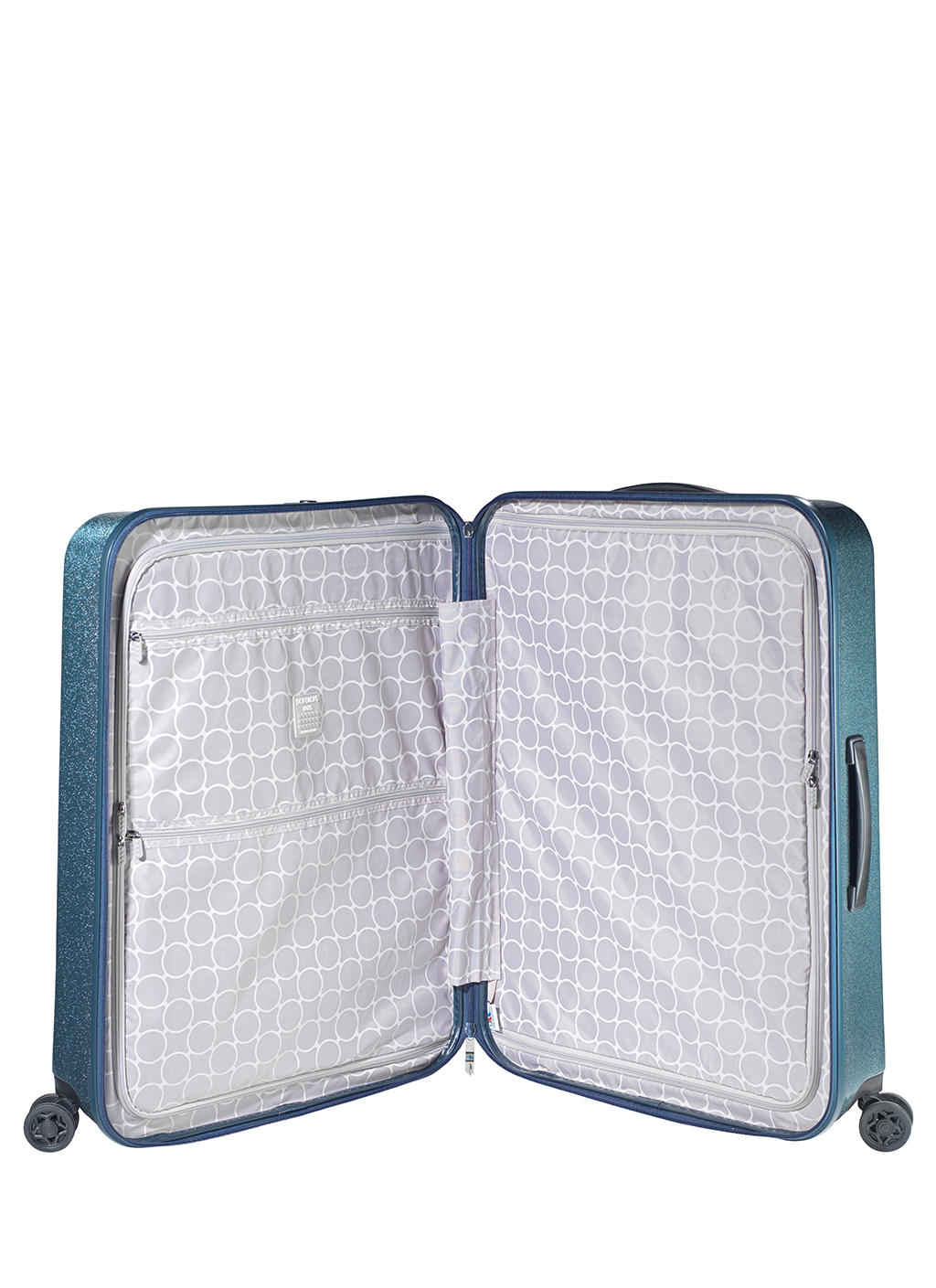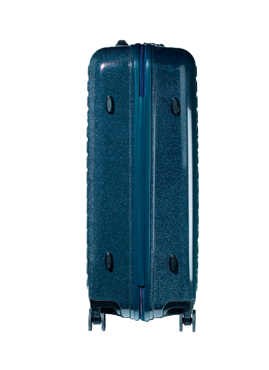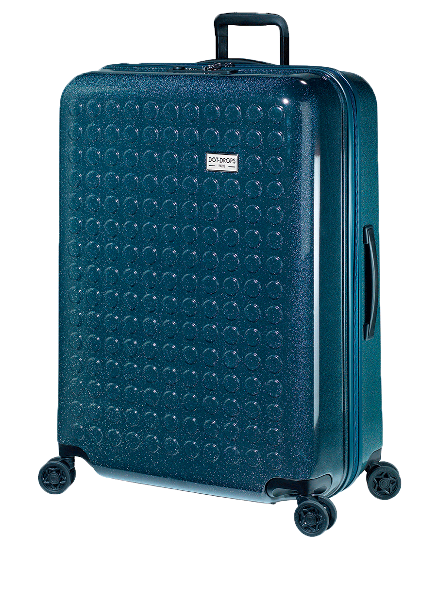 The “Dot-Drops Chapter 3” suitcase helps create a fantastic radiance of glitter, joy and durability. The suitcase’s glittering details complete a unique look. But it’s not just the exterior that matters. The Dot-Drops suitcases also hold a little bit of everything, and not least, the suitcases have four fantastic double wheels as well as a good layout with closed pockets and straps on each side. All Dot-Drops suitcases are available in different colors and sizes. The suitcase in the picture is a large suitcase for 12+ days.
