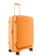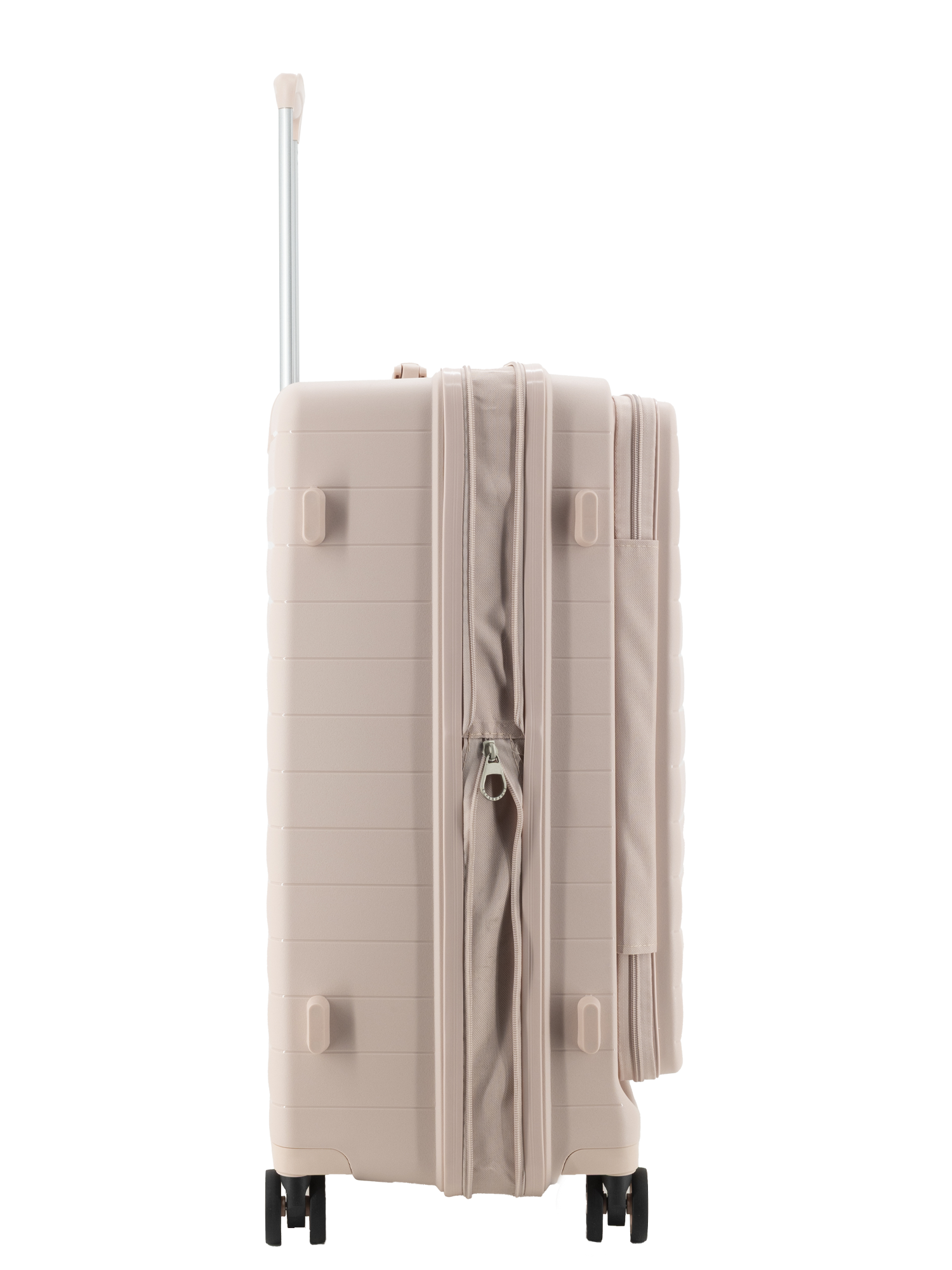 Medium-størrelsen har frontåbning direkte til hovedrummet, så du nemt kan pakke og få adgang til dine ting uden at åbne hele kufferten. Den ekspanderbare lynlås giver ekstra plads, når du har brug for det, og gør det muligt at tilpasse kufferten efter rejsens længde. Indvendigt er der en praktisk opdeling med lynlåsrum og justerbare stropper, der holder indholdet på plads under transport.