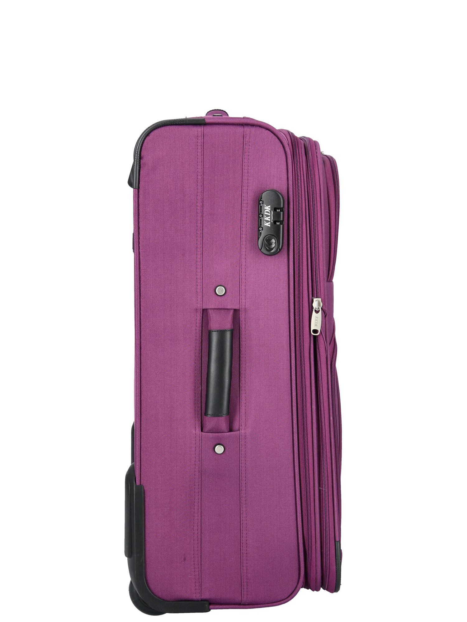 The purple 2-wheeled suitcase from Kuffert Kompagniet, a reliable travel accessory. It is perfect for anyone looking for a durable and reliable suitcase.