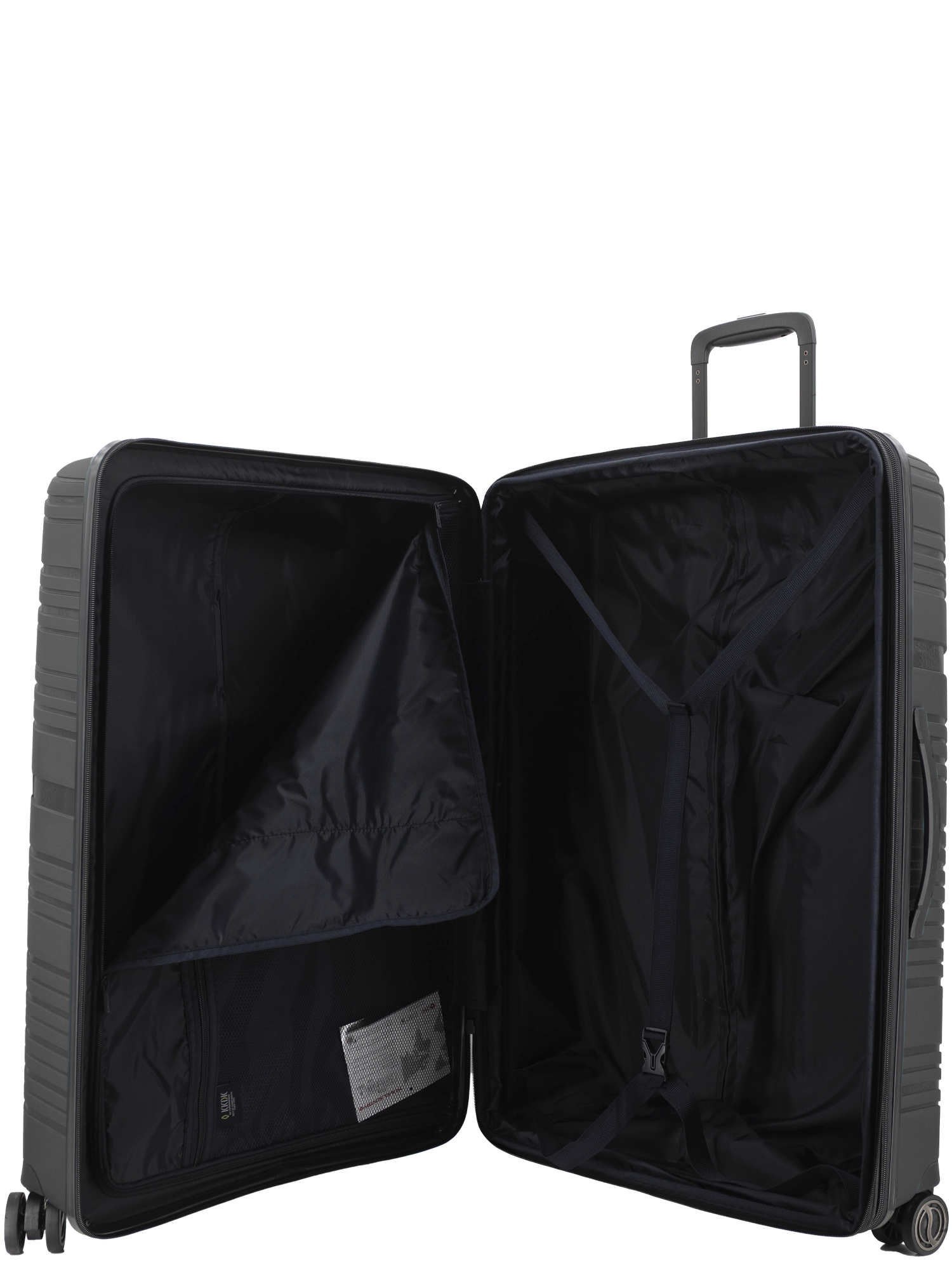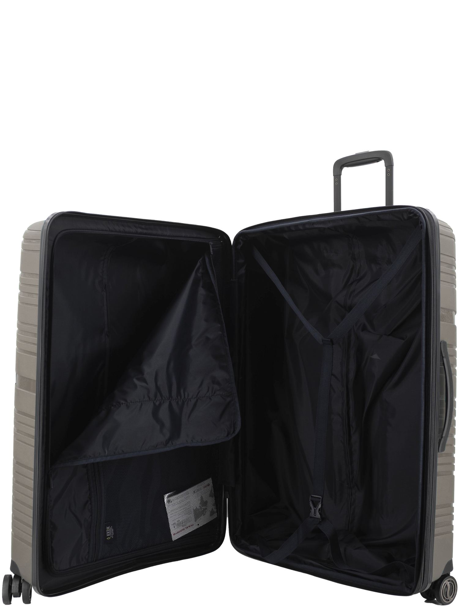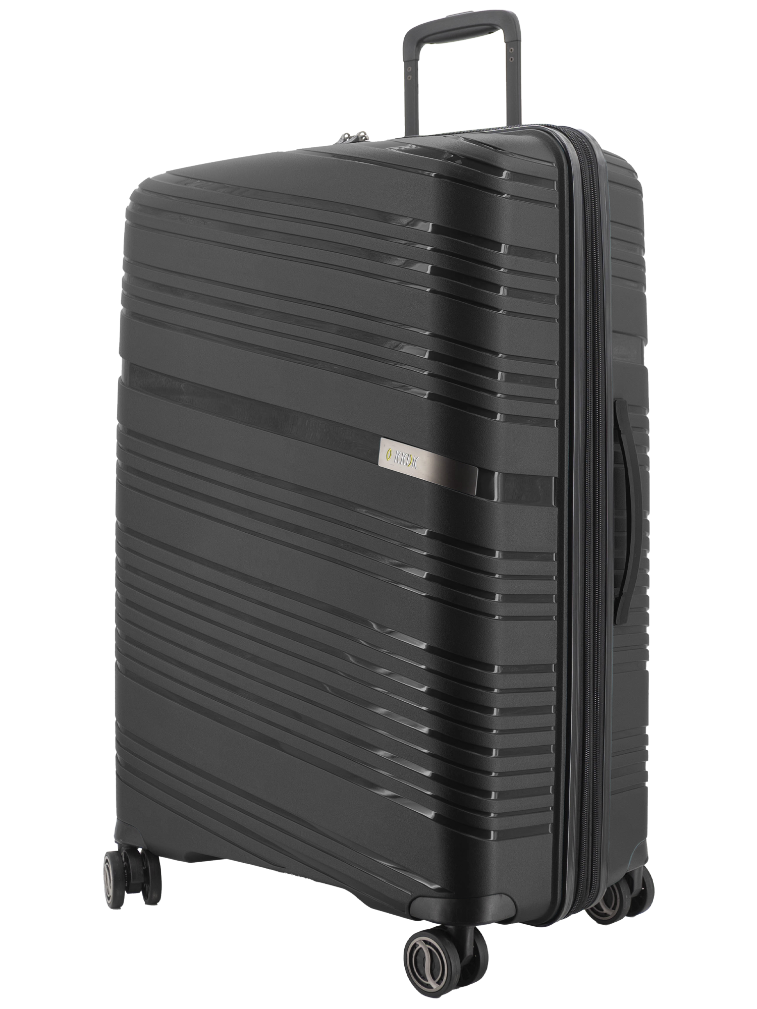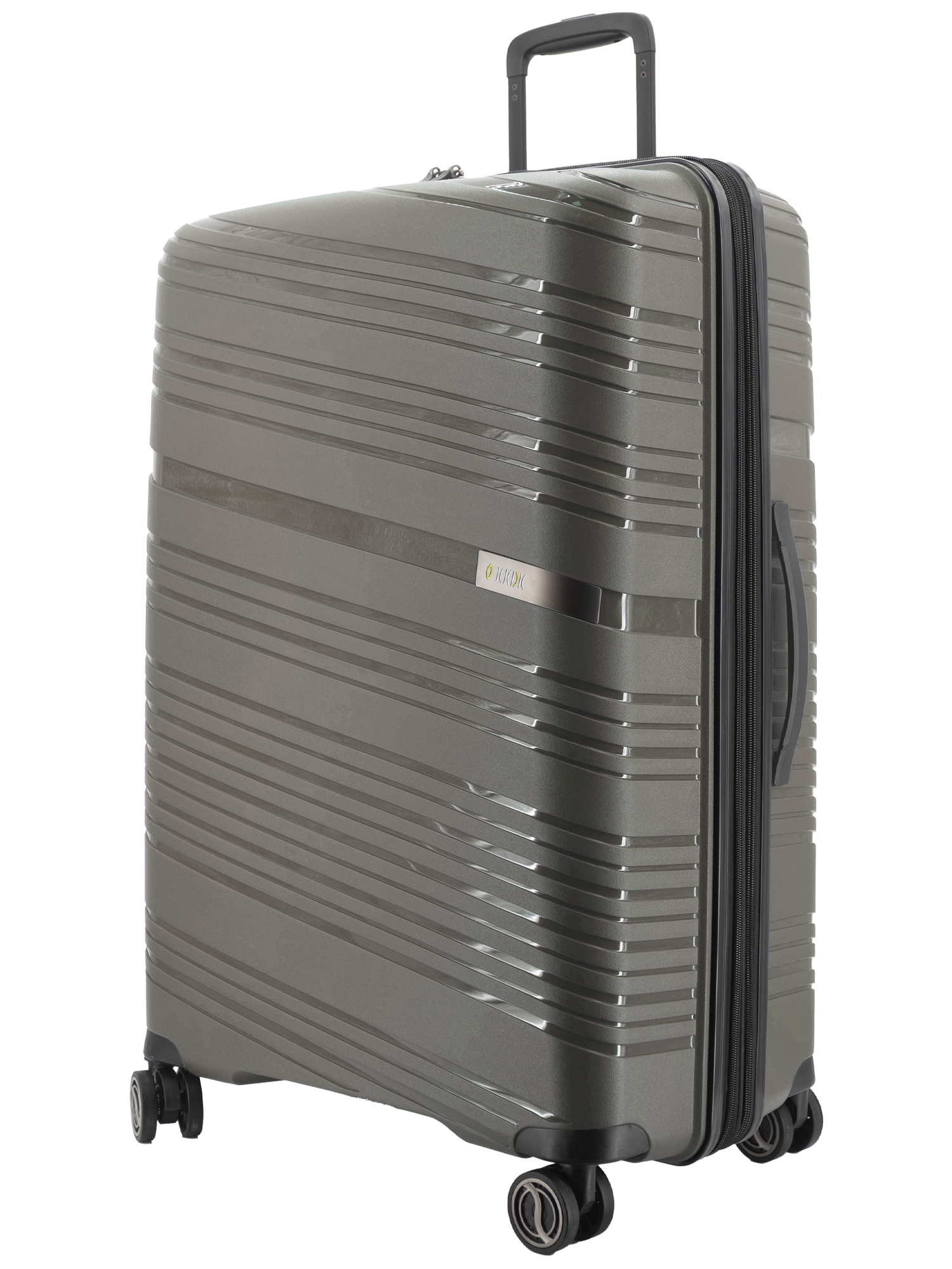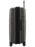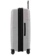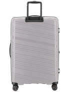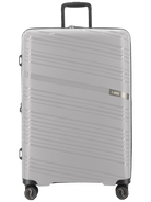 Revolution KKDK Check-In Large suitcase – strength, security, and elegance in one. Heavy-duty zipper, extra durable material, and integrated TSA combination lock secure your belongings. Silent double wheels and telescopic handles in real aluminum provide an effortless travel experience. The suitcase is made of extra thick Polypropylene with built-in expansion zipper for extra space. Perfect for longer trips. Stone and Black colors, 4.6 kg. weight, up to 120 liter capacity.