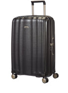 The Samsonite Lite-Cube series has its own look and unique design. This large suitcase can be used for wonderful holidays, cozy city weekends and not least quick get-aways. This is an ultra-light suitcase from Samsonite with 4 large double wheels and a telescopic handle with 2 rods. The suitcase's material is woven in polypropylene plastic material, which makes the suitcase both flexible, light and stronger than traditional molded hard-case suitcases. Inside there are packing straps at the bottom and a fully closable zipper pocket in each half, so all the contents can be separated and fastened completely. In addition, there are two smaller flat pockets that fit e.g. A4 papers or other small items.