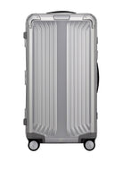 Samsonite Lite-Box Aluminum. The suitcase has a high quality of aluminum and extra reinforced corners that protect your belongings in the best way. The good craftsmanship sets the character and strengthens the function of the trunk, such as. silent double wheels and double-tube pull handles. Both make the trunk easy to maneuver. You can feel safe with Samsonite's new TSA-compatible locks.
