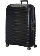 Proxis is Samsonite's new flagship suitcase. The shell itself is made of Roxkin, a fantastically durable and flexible material made of 28 layers, the suitcase can be bugged and printed developed by Samsonite itself. This extra large suitcase is recommended for trips of 14+ days. The suitcase is produced in Europe and the material is recyclable.