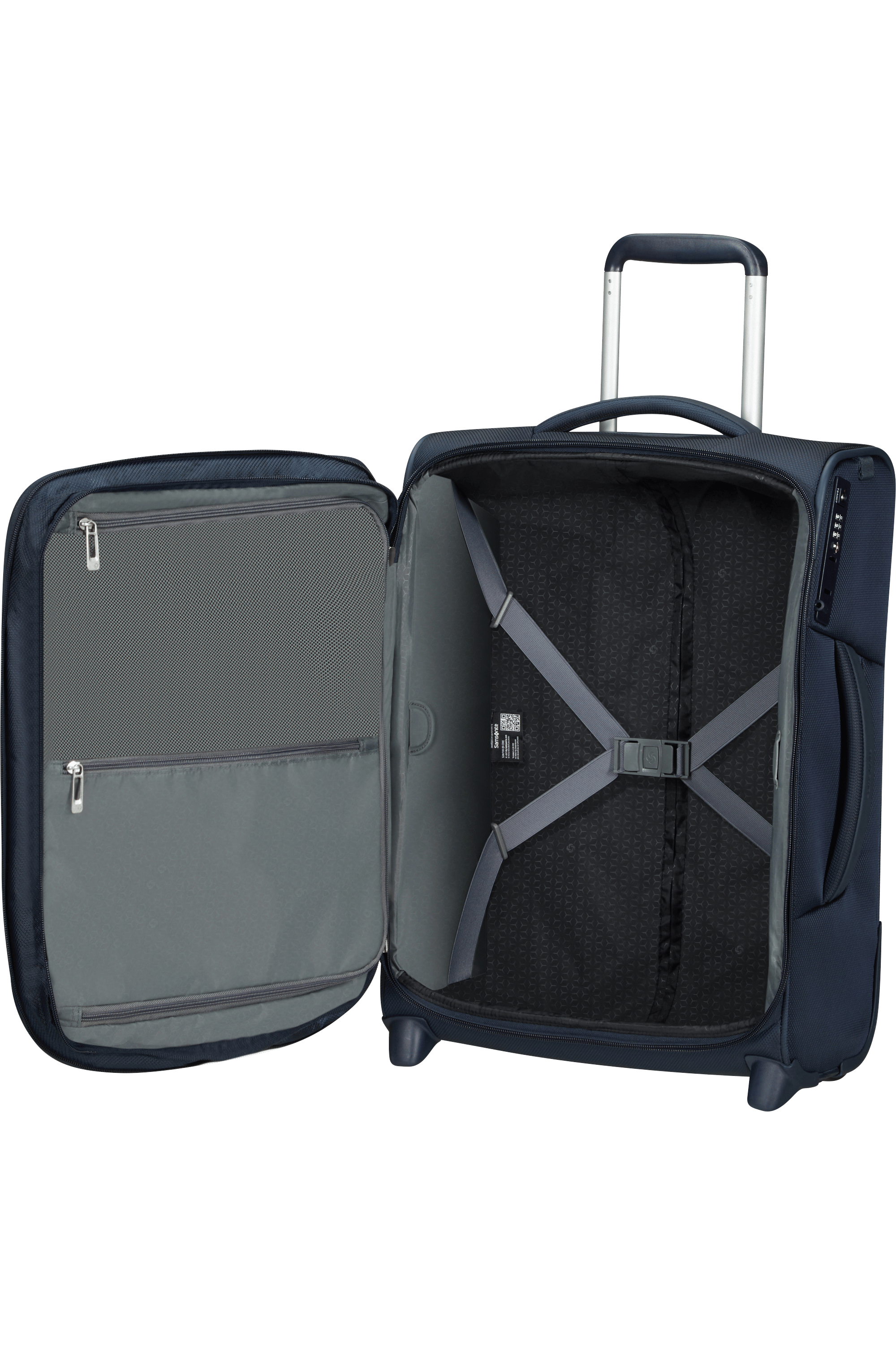 The outer part of the suitcase is made of a soft material and comes in the color Ozone Black. The suitcase measures 55 x 40 x 23 cm, but can be expanded to 55 x 40 x 27cm for more packing space. It weighs just 2.5 kg, making it easy to handle as hand luggage, and the average packing weight is around 10 kg.