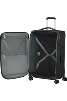 Inside, the suitcase is equipped with a bottom compartment divider and cross straps to help keep your belongings in place. There is also interior organization that makes it easy to pack your belongings efficiently.