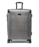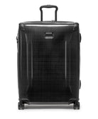 The TUMI Tegra Lite Short Trip Expandable 4 Wheeled Packing Case is a quality suitcase designed to meet the needs of travelers who require ample storage space for medium-length trips. The suitcase is constructed with TUMI's patented Tegra-Lite material "Tegris", an ultra-durable thermoplastic composite designed to withstand harsh travel conditions. The suitcase features a spacious main compartment with a divided packing compartment that includes a compression strap, and it can be expanded up to 5 centimeters for additional packing space via the exterior zipper. The suitcase has four dual spinner wheels that provide a smooth and comfortable roll, and a telescoping handle that can be locked in three different positions, making it comfortable for travelers of different heights to use. The suitcase has a built-in TSA-approved combination lock for added security and an integrated luggage tag on the side. Overall, the TUMI Tegra Lite Short Trip Expandable 4 Wheeled Packing Case is a well-designed and durable choice for trips around 6-10 days, combining style, functionality and durability to make your travel experience enjoyable for years to come. The suitcase is made in Thailand.