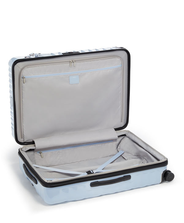 The further you travel, the more stamps in your passport, the better your story. Your 19 Degree luggage is part of that story. As striking from a distance as it is up close, this expandable suitcase features a modern silhouette with flowing, angular lines. Made with a recycled polycarbonate shell, it's lightweight and flexible, yet still durable. It's ideal for extended business and leisure trips or for group packing. The smooth and quiet four-wheel system combined with expandable packing ensures effortless travel. Protect what makes your trip perfect with PROTX2® technology. The suitcase's lining has been treated with the innovative antimicrobial coating to help prevent the growth of bacteria and mold that can cause fabric odors on the surface.
