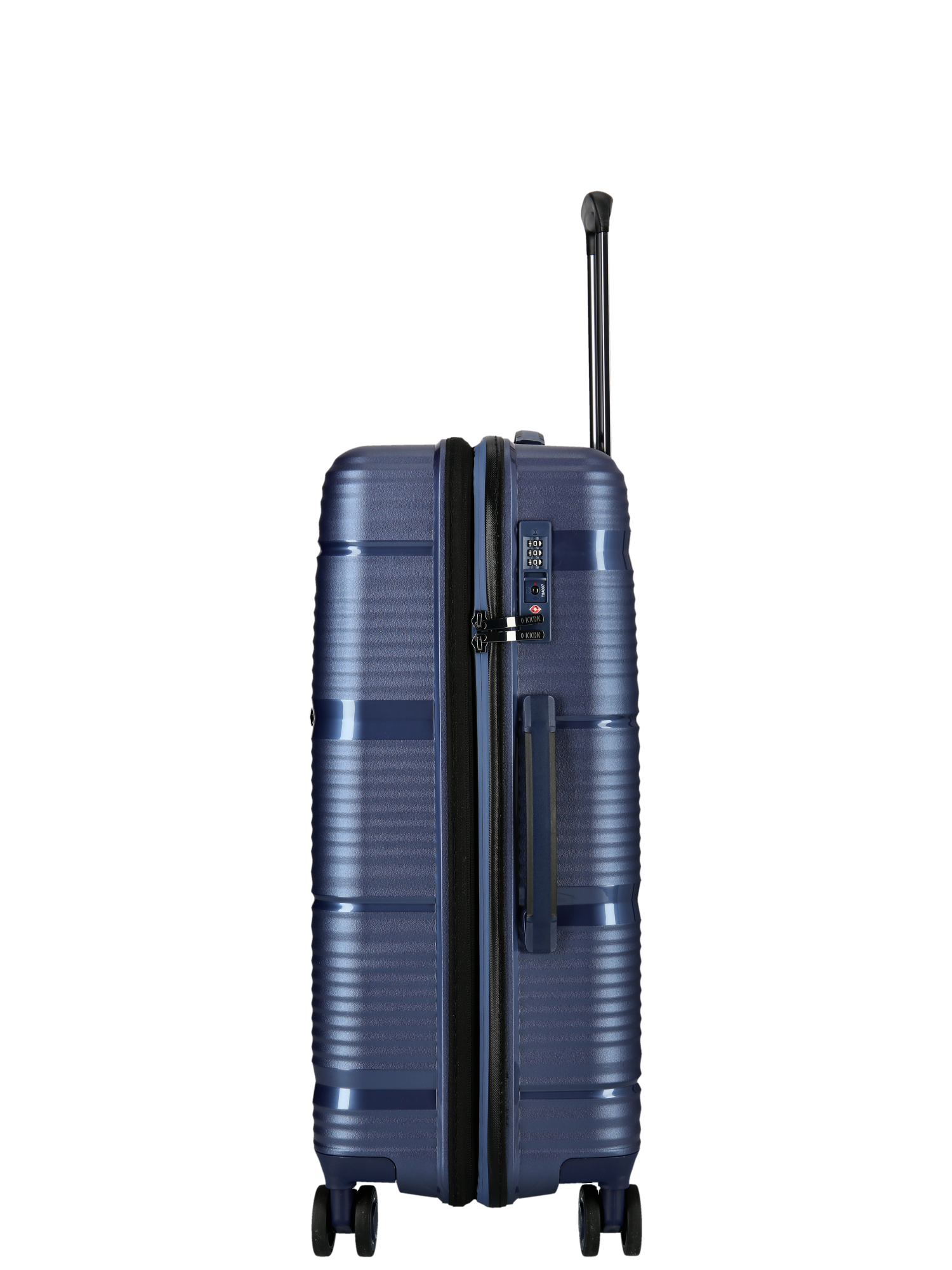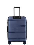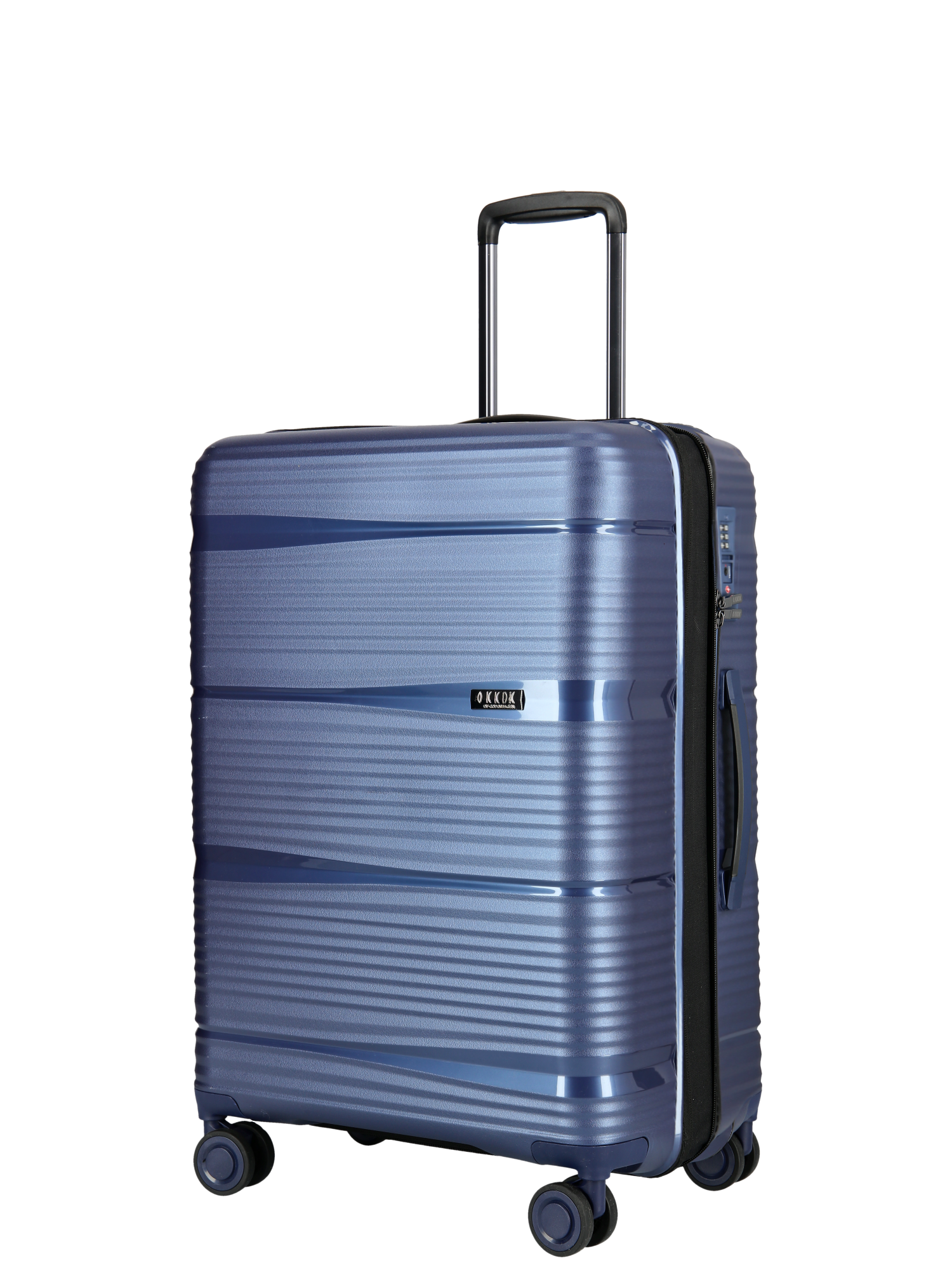 Carrying handle on top. The suitcases are made of the latest super resistant Pure Polypropylene. The suitcase is available in 3 sizes and colors, Matt Blue, Matt Black, Matt Green in a modern and stylish look.