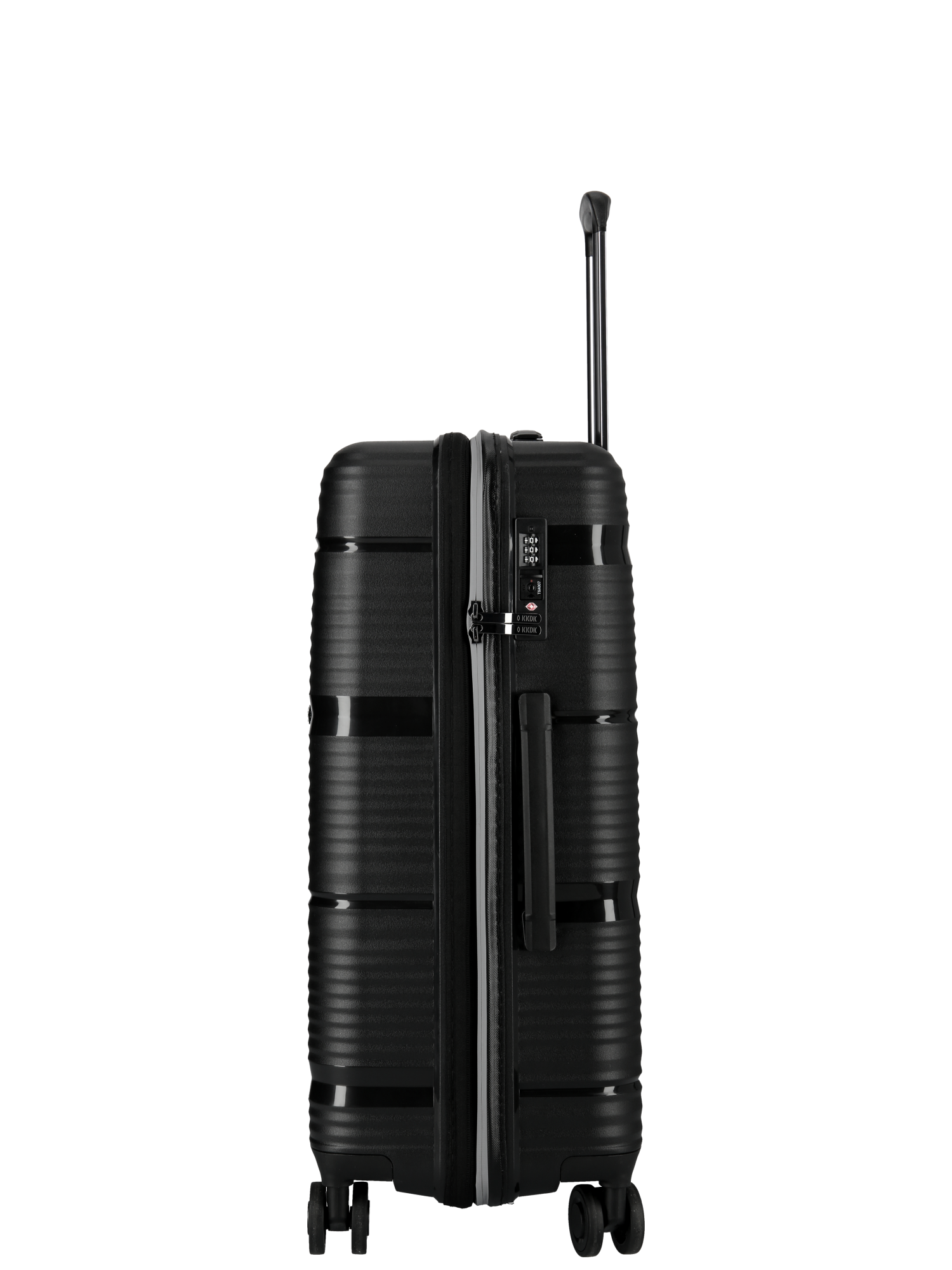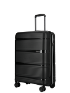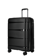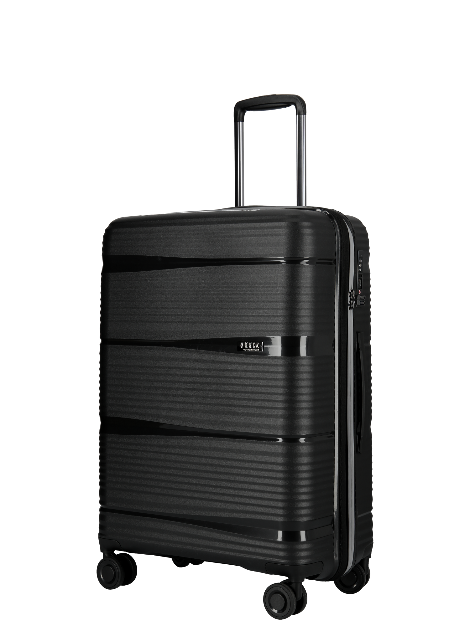 Carrying handle on top. The suitcases are made of the latest super resistant Pure Polypropylene. The suitcase is available in 3 sizes and colors, Matt Blue, Matt Black, Matt Green in a modern and stylish look.