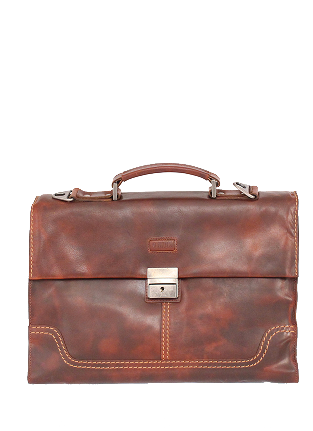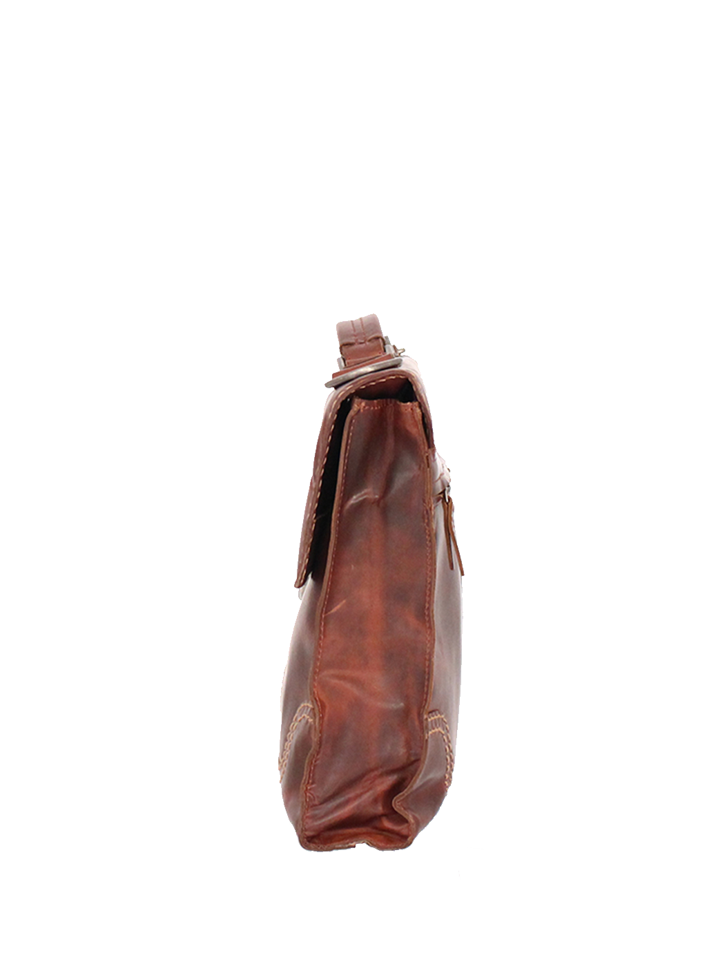 Lovely little computer bag in cognac color, soft leather with space for a 14" laptop PC. The computer bag has a flap with a front lock. The inside is lined in checkered and colorful fabric in soft and lovely material.