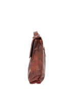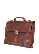 Lovely little computer bag in cognac color, soft leather with space for a 14" laptop PC. The computer bag has a flap with a front lock. The inside is lined in checkered and colorful fabric in soft and lovely material.