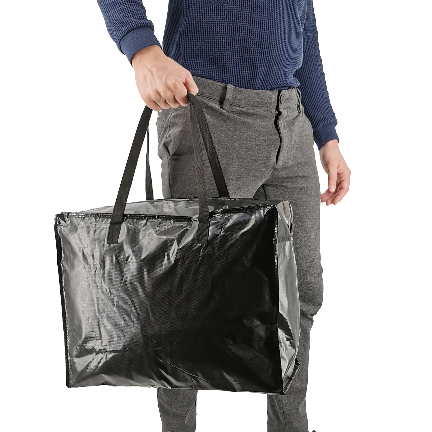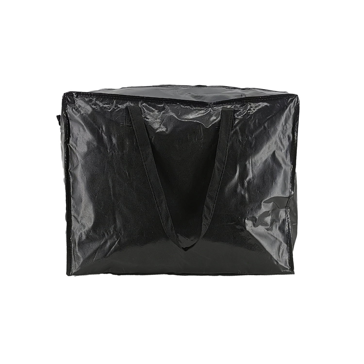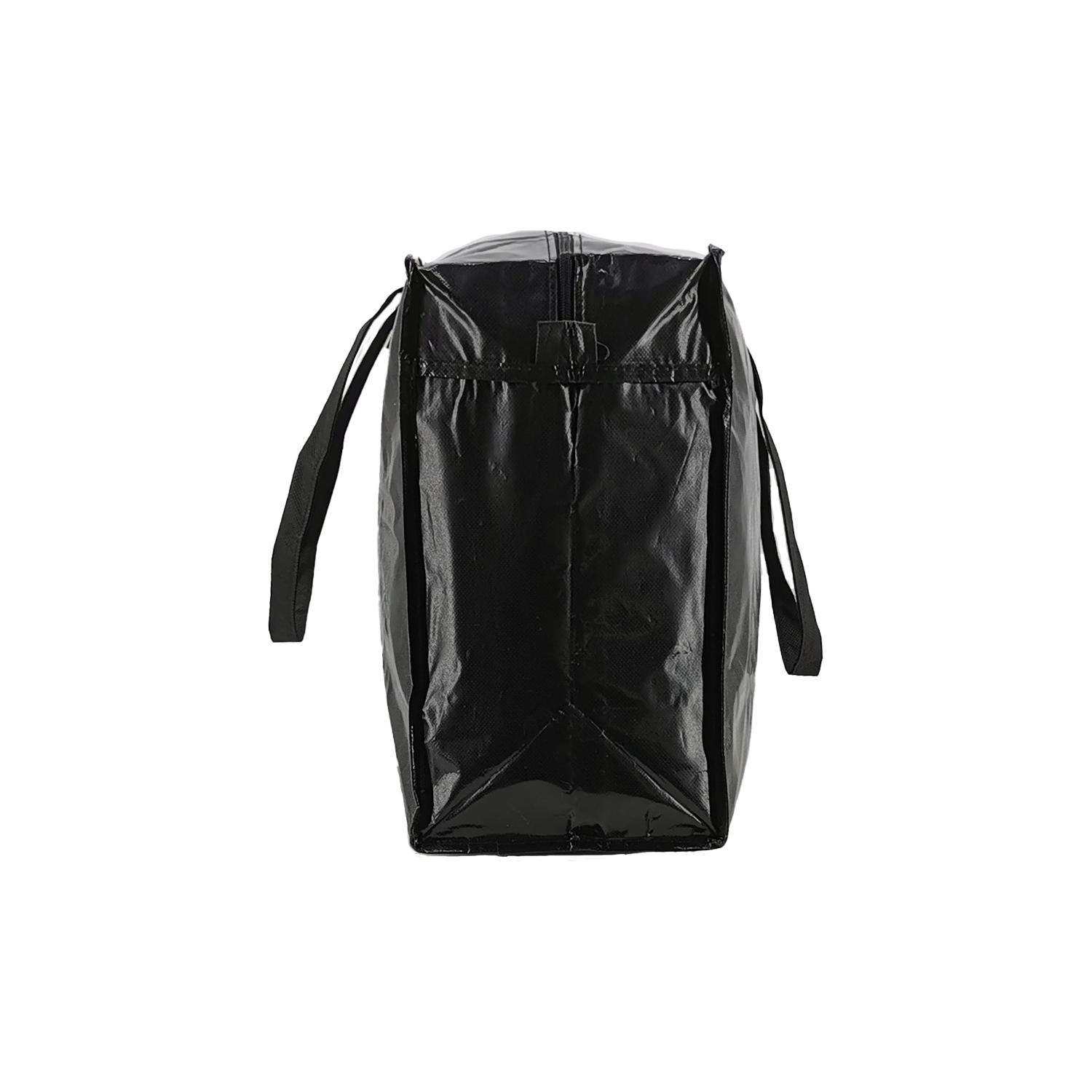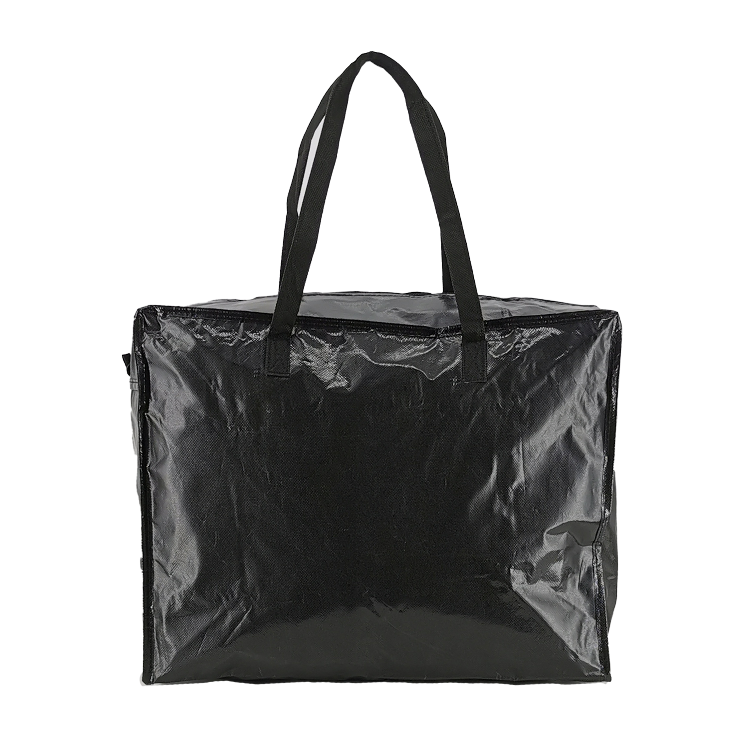 Lightweight shopping bag with zipper closure in strong and coated water-resistant material, can be folded completely flat for easy storage. Square design makes it easy to find space for various purchases and the bag closes easily with a zipper.