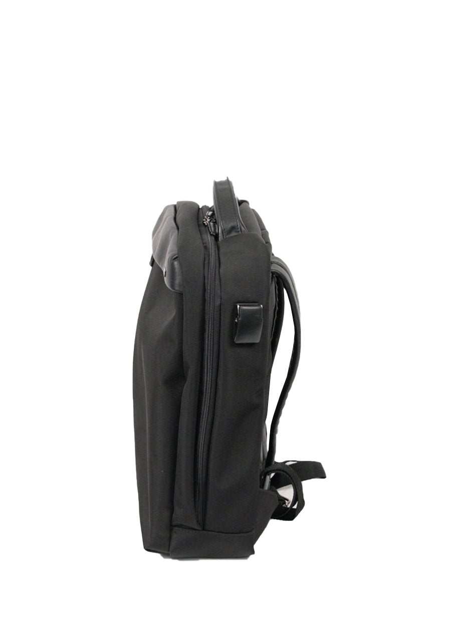 Computer backpack with leather details. The backpack has space for a 15.6" laptop. The backpack straps can be completely hidden in the back of the bag. A removable shoulder strap is included, so you can use it as a shoulder bag.