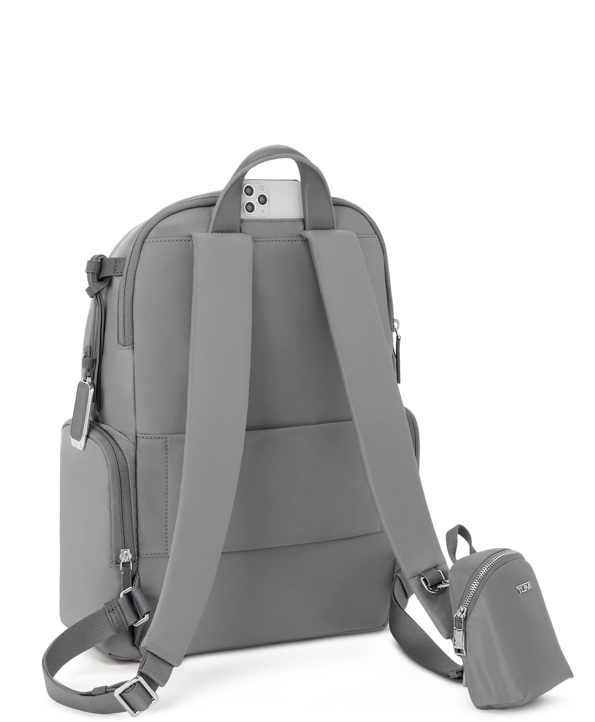 Padded adjustable backpack straps compatible with select TUMI+ accessories*.