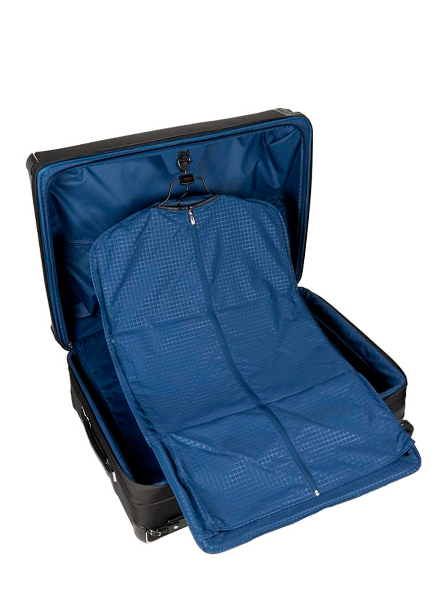 Very nice and exclusive large trolley from TUMI in combined leather and ballistic nylon. Many exclusive details such as polished chrome, magnetic zippers, shoe bag and nice interior packing system with space for a suit or dress.