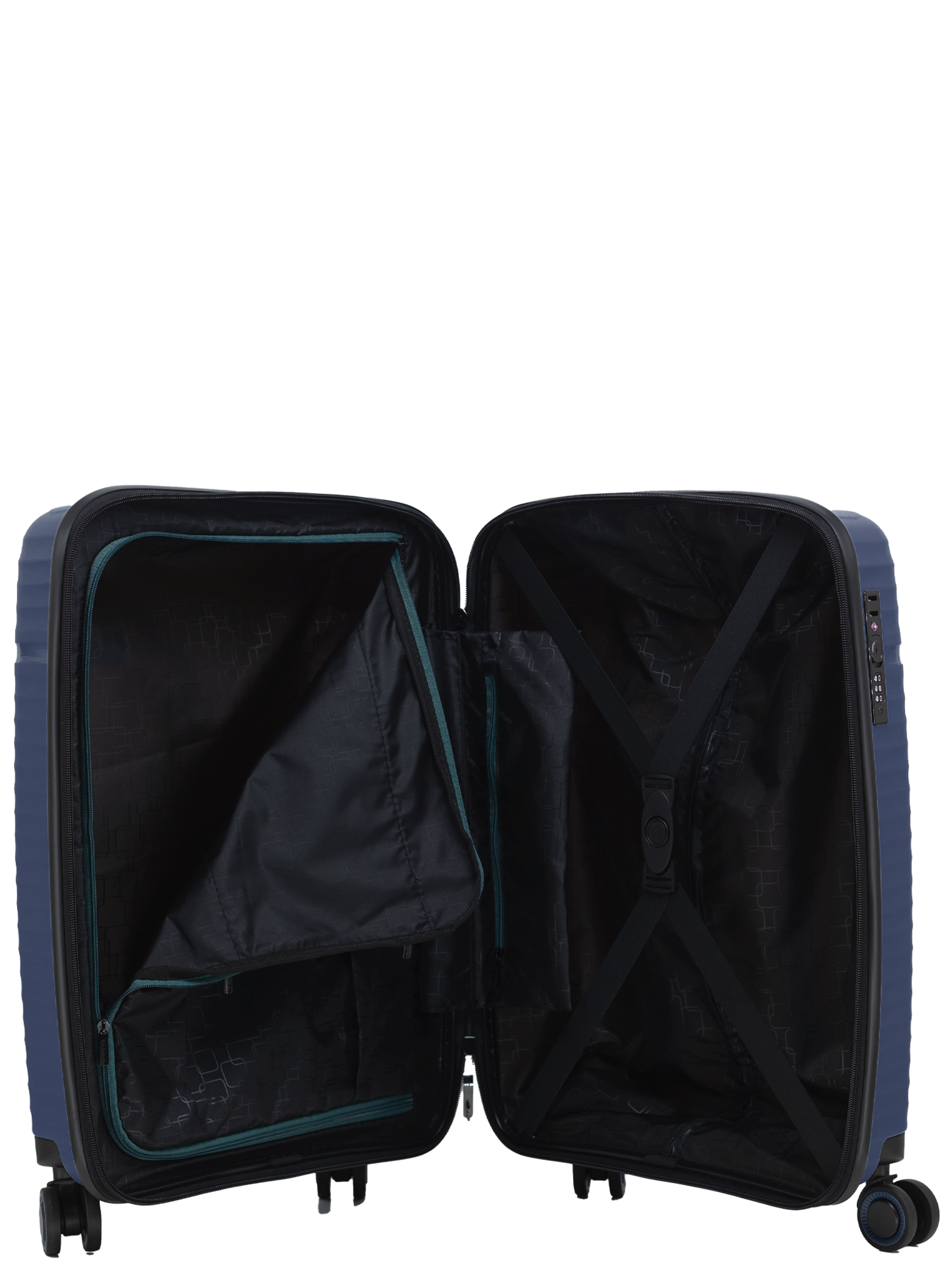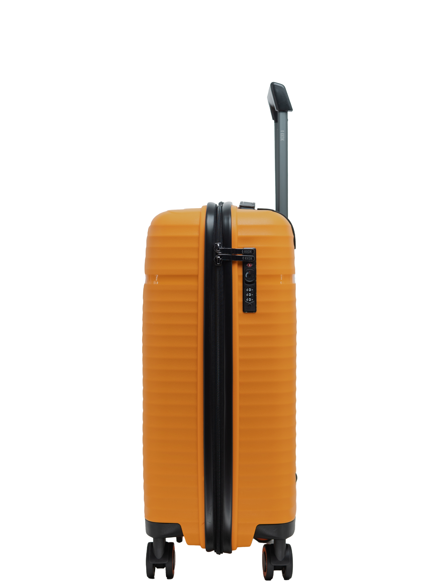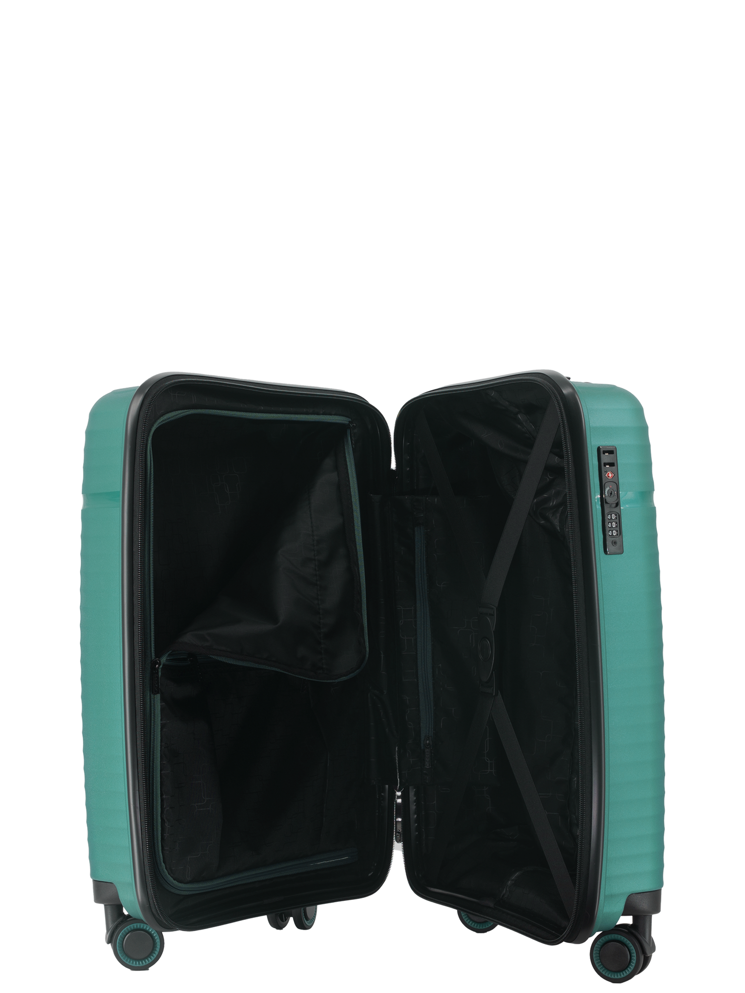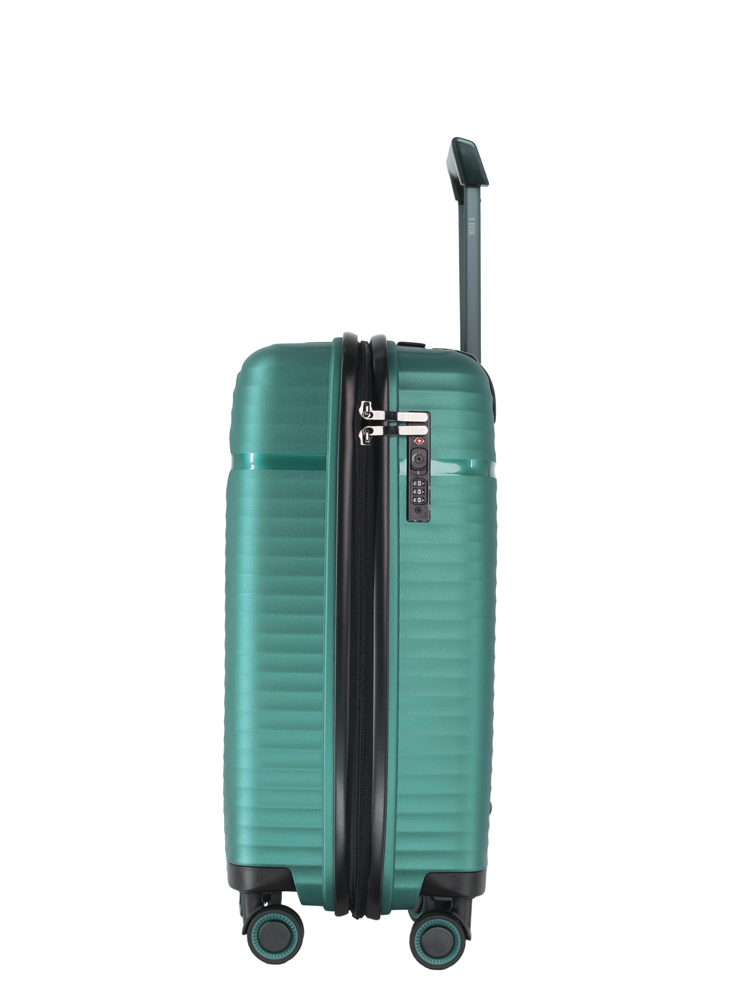 Lightweight suitcase with double-layer zipper for the main compartment, making the suitcase even more secure and durable compared to traditional zippered suitcases. Integrated TSA-approved combination lock. Solid and silent double wheels provide unmatched maneuverability. Telescopic handle in real aluminum with three height levels. Carrying handle on the suitcase. The suitcase is made of the latest super resistant Pure Polypropylene material. The suitcase is available in 3 sizes and several colors, Metallic Green, Metallic Blue, Orange, Silver, Navy and Black. All suitcases in a modern and stylish look.