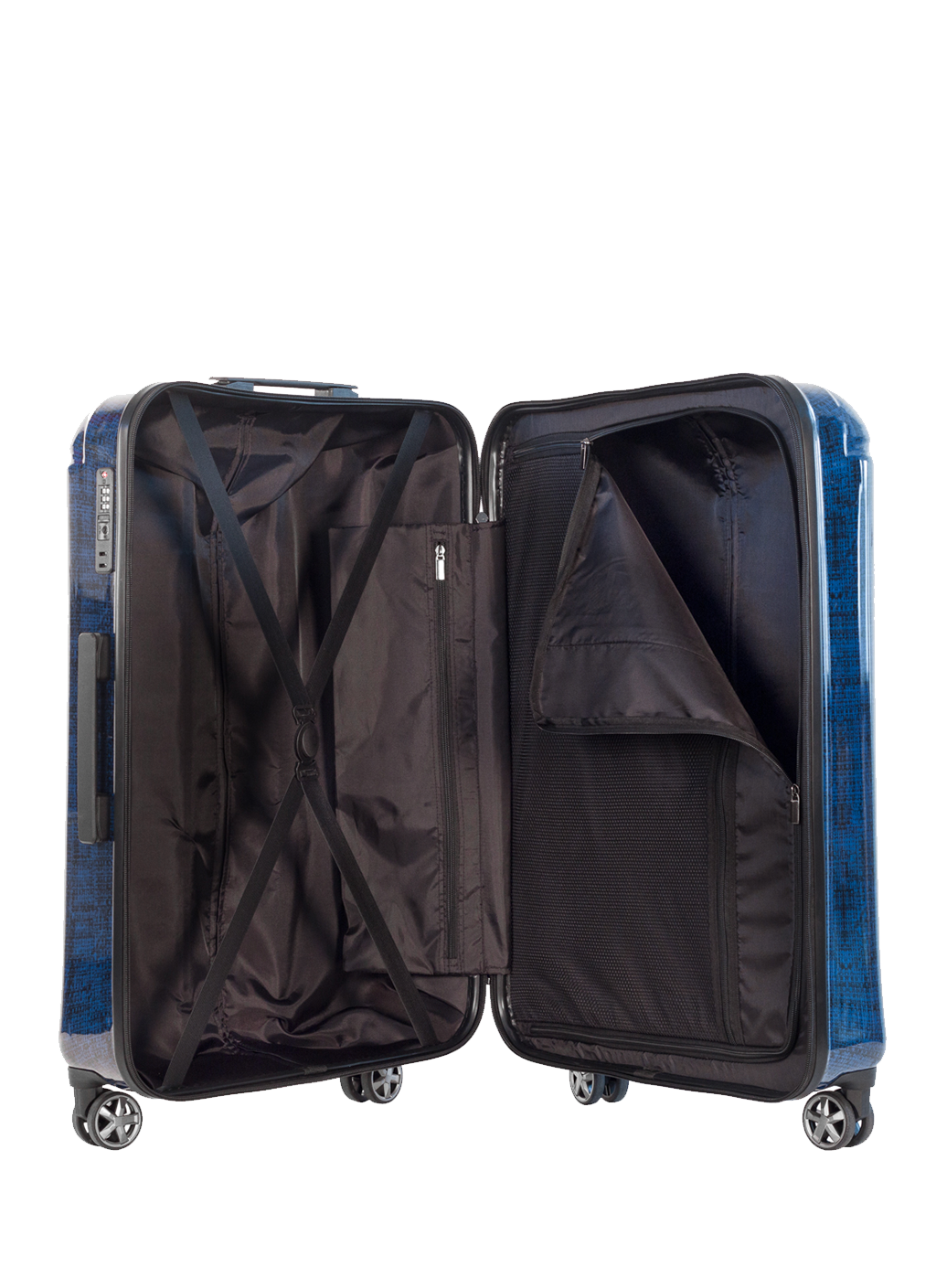 Lightweight suitcase with a strong double-layer zipper for the main compartment, which makes the suitcase even more secure than traditional zippered suitcases. On the side of the suitcase, there is an integrated TSA-approved combination lock, which makes it possible to lock the suitcase with a unique code that you can set yourself. Instructions for the lock are included inside the suitcase. The large, strong and solid wheels for the suitcase help ensure the best maneuverability. The telescopic handle is solid with little clearance when moving the stand, in addition, it is possible to lock the height of the telescopic handle with different steps. Strong carrying handles are found both at the top and on the side of the suitcase. The suitcase is available in 2 colors, dark blue or gray, both colors have a woven structure, which gives the suitcase a unique and stylish look.