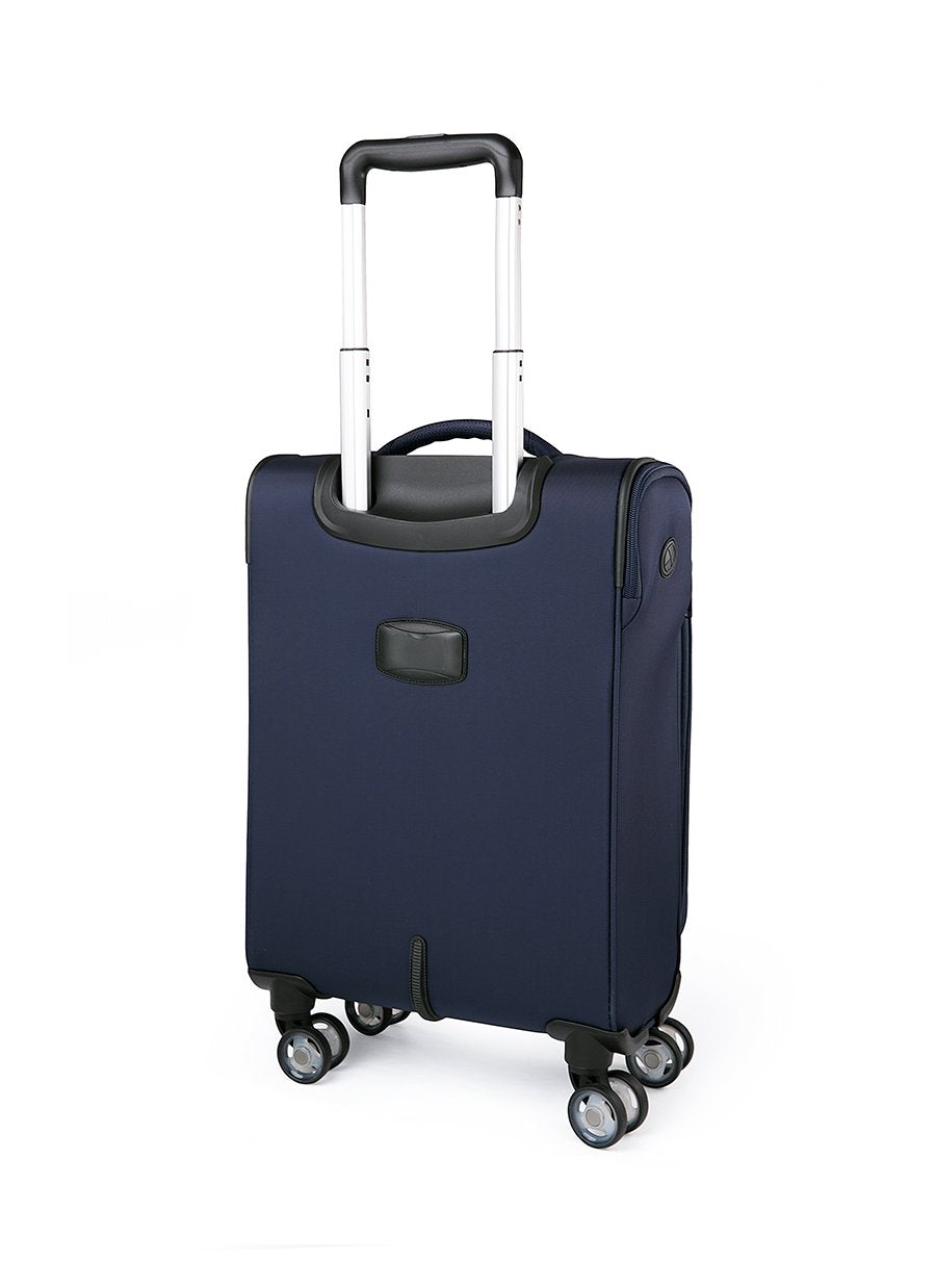 Lightweight cabin suitcase in Navy blue with 4 silent double wheels. The suitcase can be expanded from 20 cm to 24 cm in depth. The telescopic rods are made of aluminum to give the suitcase lightness. The cabin suitcase has double-layer zippers, which makes the zipper much stronger than traditional zippers. The suitcase has a built-in TSA combination lock at the top. The inside of the suitcase is lined with fabric, as well as 2 supportive straps at the bottom, which keep clothes in place. On the outside there are 2 easy-to-access front pockets with zippers. All parts such as wheels, locks, handles, etc. are mounted with screws so that everything can be replaced on the suitcase if the airport staff mishandles the suitcase. A perfect cabin suitcase for those of you looking for a new suitcase with good wheels and a lightweight material at the best price. The suitcase is approved as cabin size with the vast majority of airlines, however, we always recommend that you read the rules of the airline you are flying with first, as the size of a cabin suitcase can vary from airline to airline.