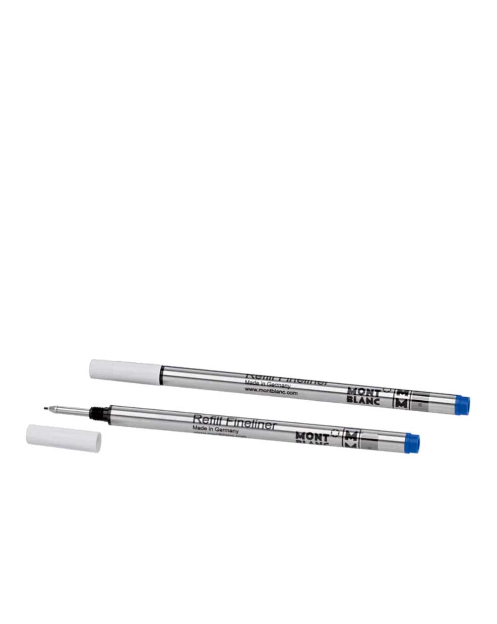 Montblanc Fineliner refills, in the color Royal Blue. 2 refills are included. M = Medium. Fits all Montblanc Fineliner and Rollerball pens (except Meisterstück LeGrand, Montblanc M and Heritage collection capless Rollerballs).