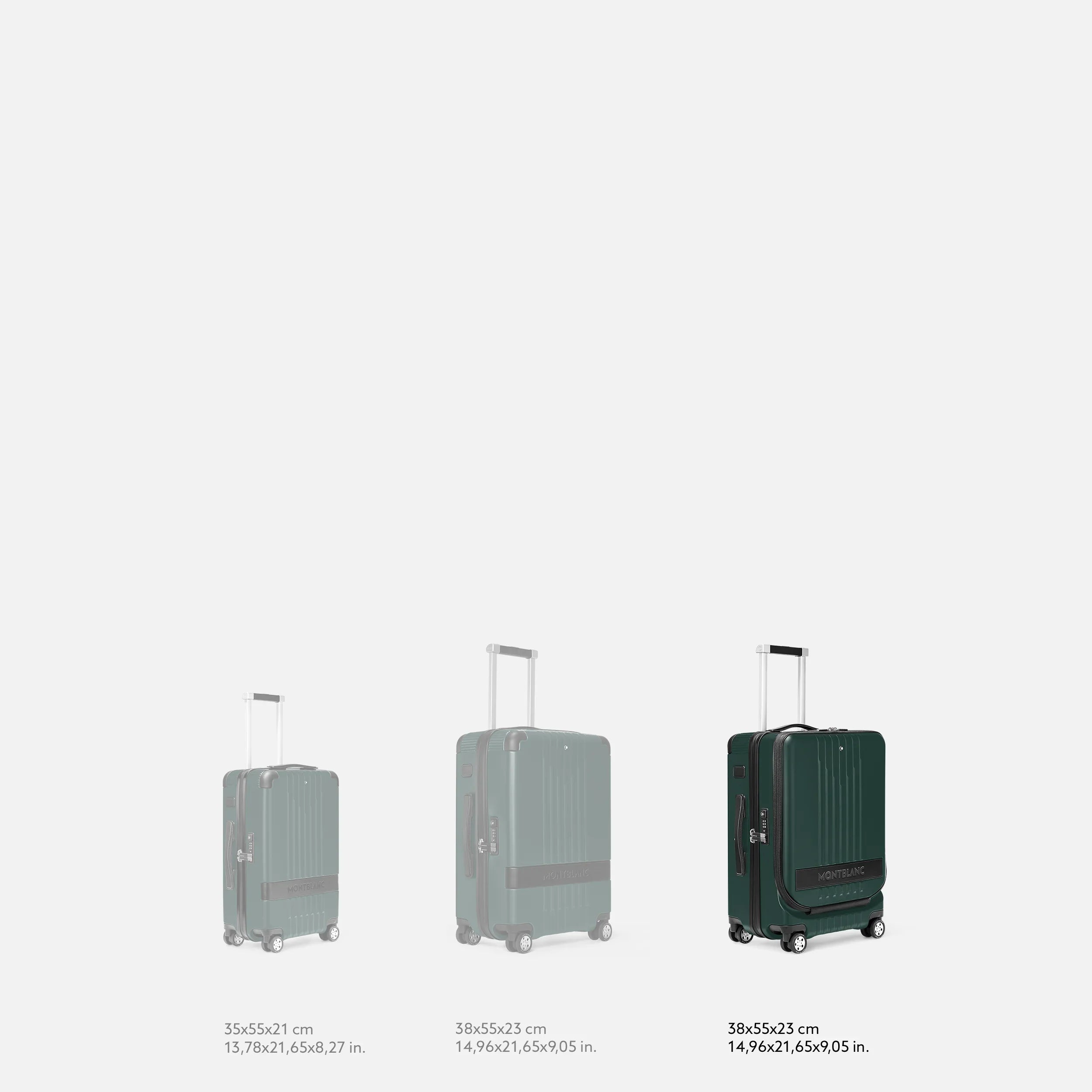 Your personal travel partner. A compact 4-wheeled hand luggage made of polycarbonate with leather details. The practical front pocket is perfect for your laptop as well as travel documents and folders. This Montblanc suitcase is generally approved as a cabin suitcase on most scheduled airlines.