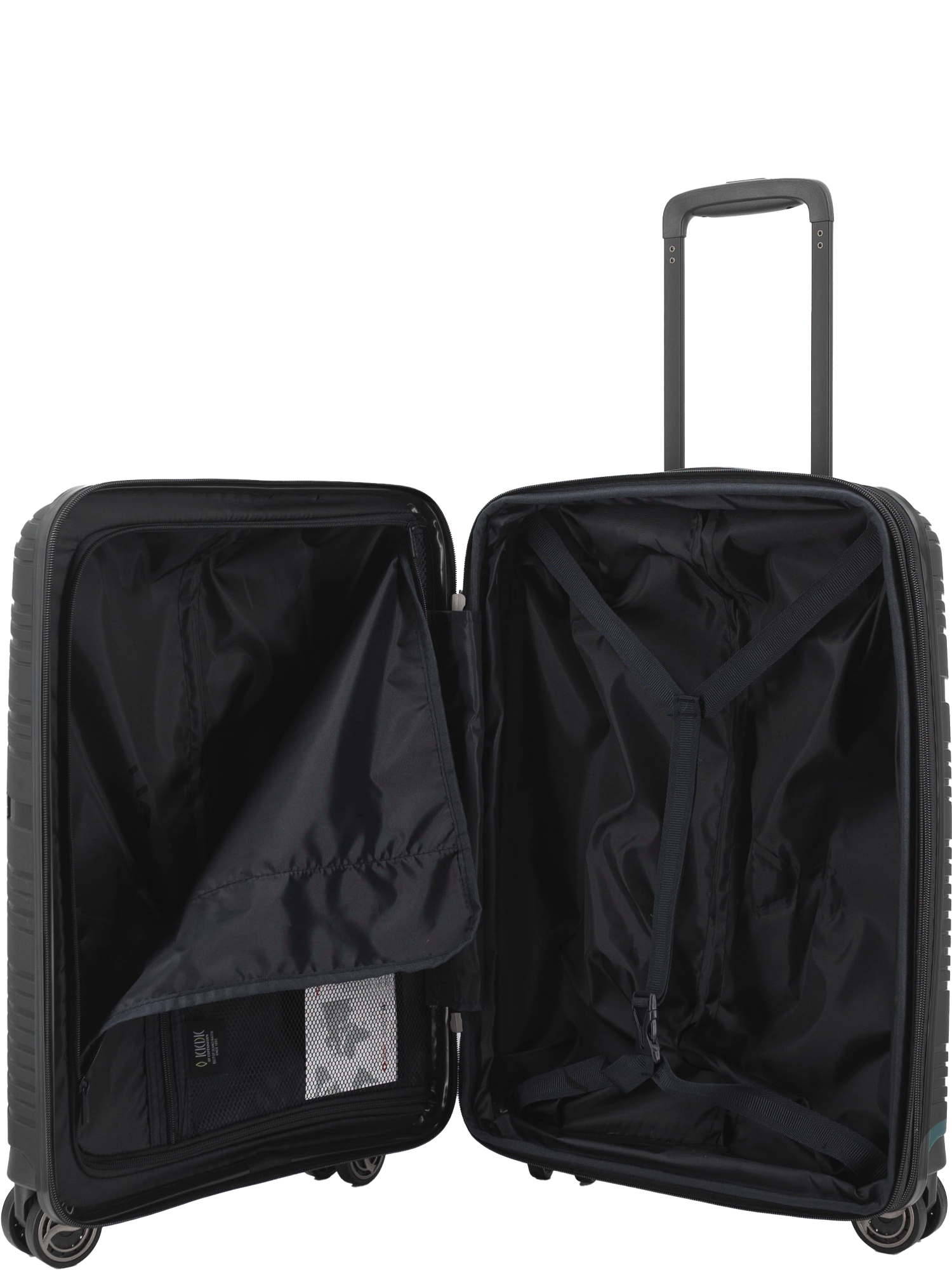 The suitcase is part of a larger set from the "Revolution" series, so you can also get two matching larger check-in suitcases. The cabin size fits inside the Check-in M suitcase, and the Check-In M suitcase can be stored inside the Check-In L suitcase, so storage has never been easier.