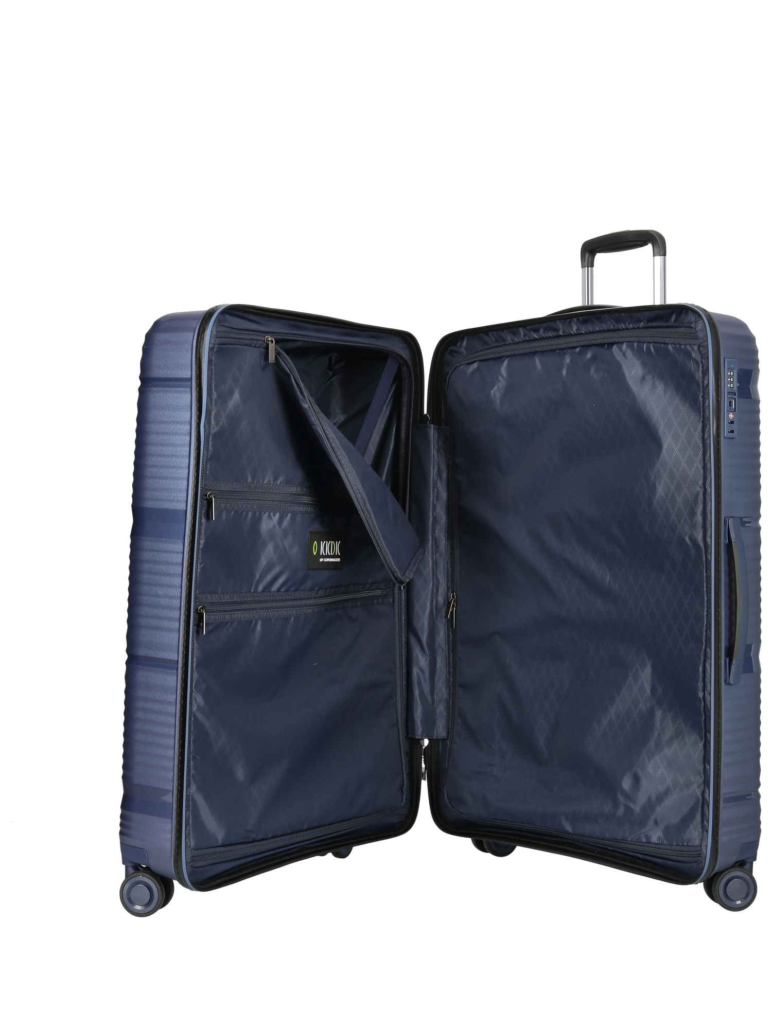 The suitcase is available in matte colors, giving it a sophisticated and modern look. For easy mobility, the Wire suitcases are equipped with four multi-wheels, providing a smooth and effortless movement in all directions. The extra-high telescopic handle with double bar provides comfortable handling, and the approved TSA combination lock secures your belongings. Whether you are a frequent traveler or planning your next adventure, our Wire suitcase set is designed to meet your travel needs with style and functionality. Carrying handles on both the top and side. The suitcases are made of the latest super resistant Pure Polypropylene. The suitcase is available in Matt Blue in a modern and stylish look.